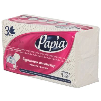 Полотенце бумажное 3 слоя, 100 штук, Papia, 5090823